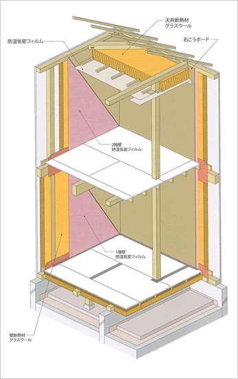 グラスウール充填断熱の標準施工法を断熱部位ごとに解説いたします。
