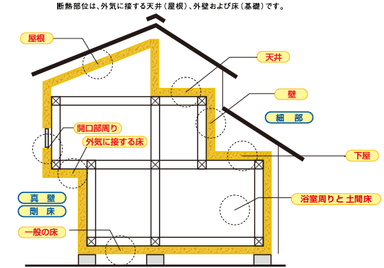 ご覧になりたい下記の断熱部位をクリックしてください。