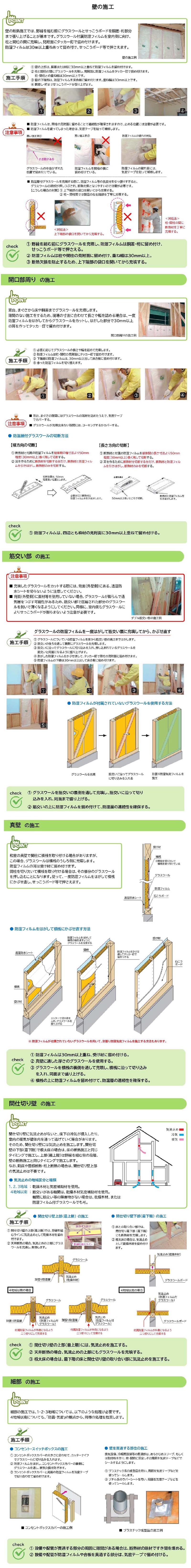 グラスウール充填断熱の標準施工法を断熱部位ごとに解説いたします。ご覧になりたい下記の断熱部位をクリックしてください。