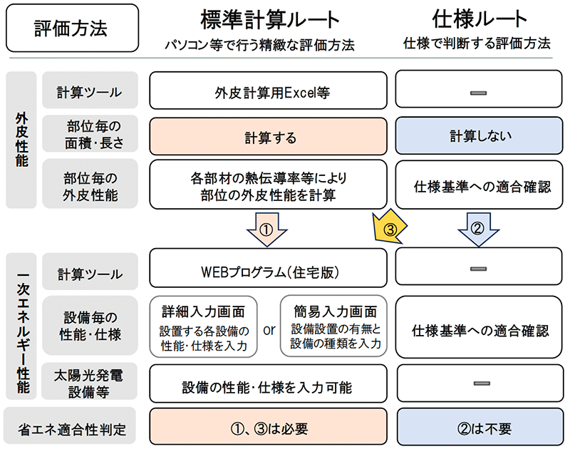 ①外皮性能と一次エネルギー消費性能の両方を標準計算ルートで行う
